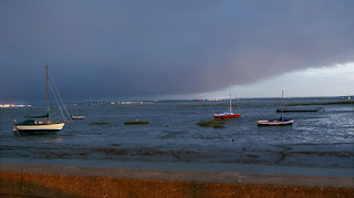 Down to the shores now. Don't ask, "What shores?", because the answer to that is a pint. I mean the shores of the Thames Estuary and old Leigh-on-Sea. As the light fades, there's a storm brewing over Kent.