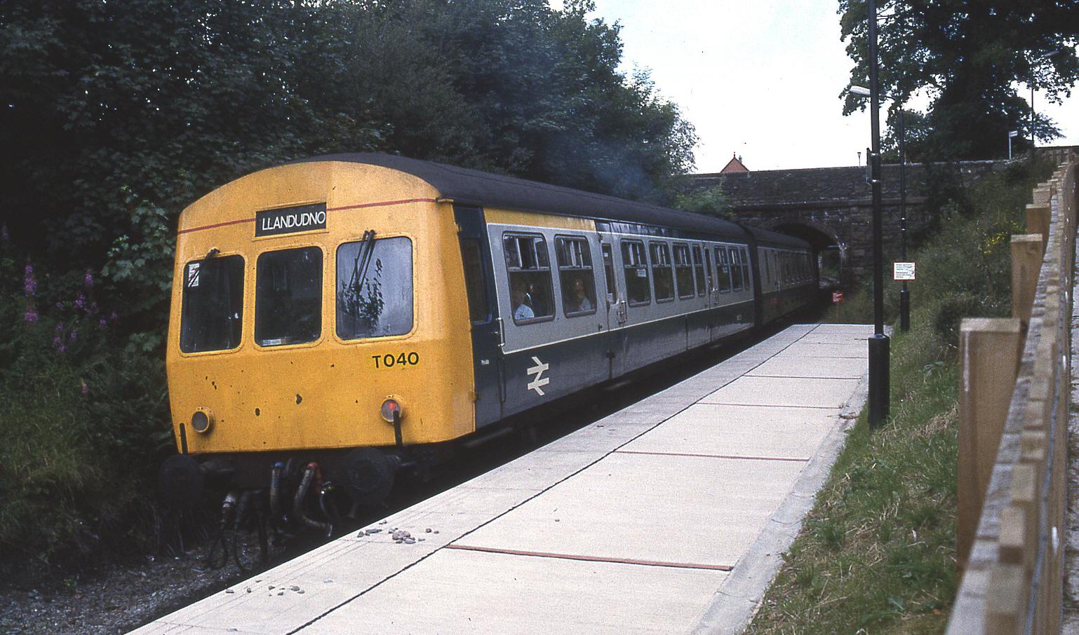 A DMU forms a shuttle to Llandudno in 1985.